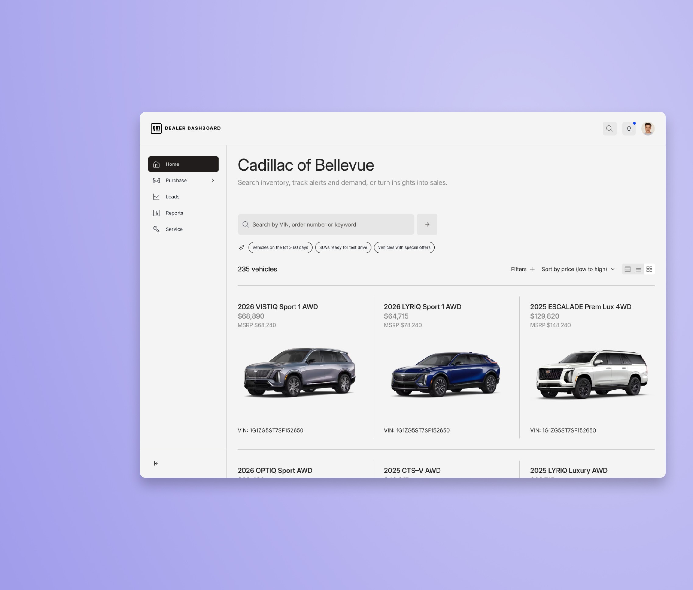 Natural language for inventory discovery Easily query by customer needs (e.g., "Family SUVs under $50k with 3rd row") instead of memorizing technical trim codes. Smart filters time when with a customer to better tailor needs.